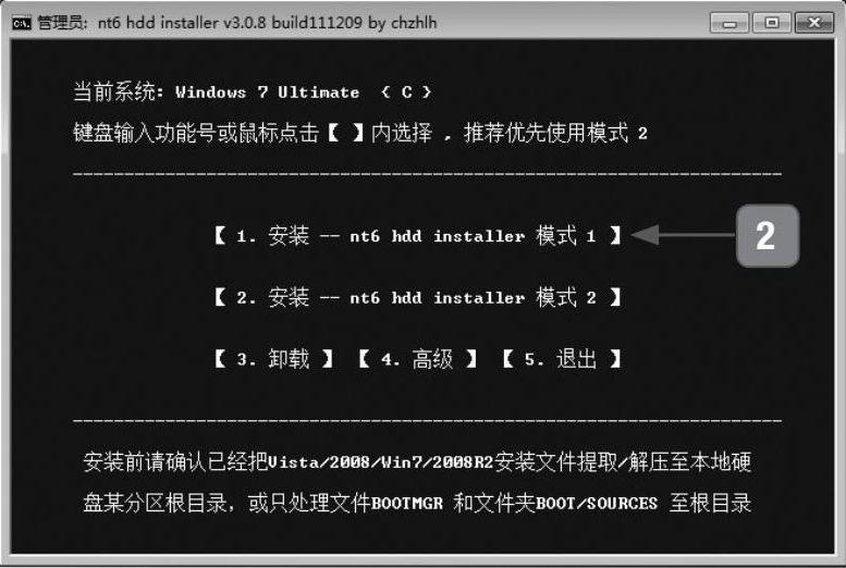 2 下载并运行NT6 HDD Installer软件,在弹出的窗口中选择第一个选项。