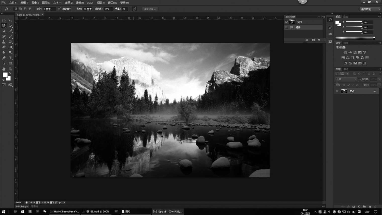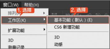 第1步 执行Photoshop CS6【窗口】→【工作区】→【基本功能(默认)】命令,Photoshop CS6的面板状态,如下图所示。