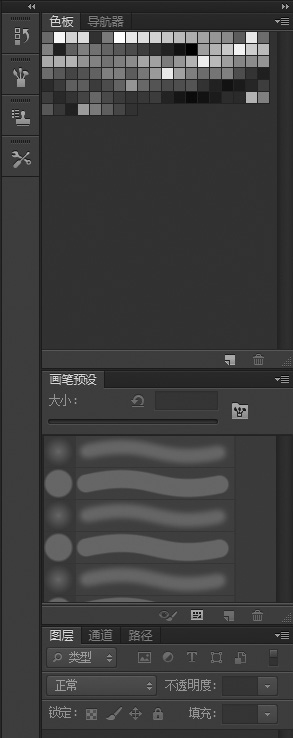 按【F5】键可以打开【画笔】面板,按【F6】键可以打开【颜色】面板,按【F7】键可以打开【图层】面板,按【F8】键可以打开【信息】面板,按【Alt+F9】组合键可以打开【动作】面板。