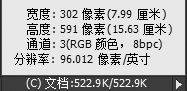 第2步 如果在状态栏上按住鼠标左键不放,则可显示图像的宽度、高度、通道、分辨率等信息,如下图所示。
