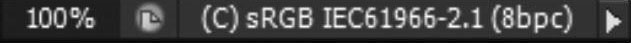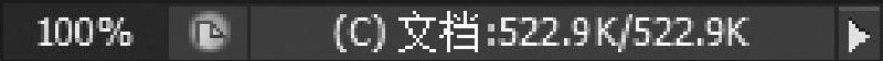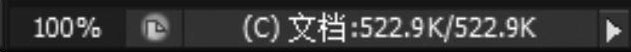 Photoshop CS6中文版状态栏位于文档窗口底部,状态栏可以显示文档窗口的缩放比例、文档大小、当前使用工具等信息,如下图所示。
