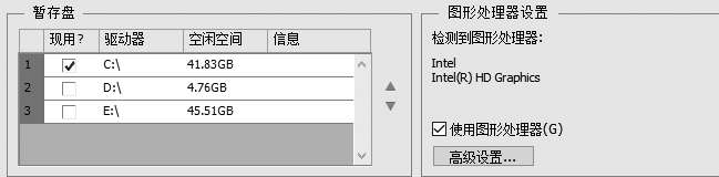 如果系统没有足够的内存来执行某个操作,则Photoshop将使用一种专有的虚拟内存技术(也称为暂存盘)。暂存盘是任何具有空闲空间的驱动器或驱动器分区。默认情况下,Photoshop将安装了操作系统的硬盘驱动器用作主暂存盘,可在该选项区域中将暂存盘修改到其他驱动器上。另外,包含暂存盘的驱动器应定期进行碎片整理。