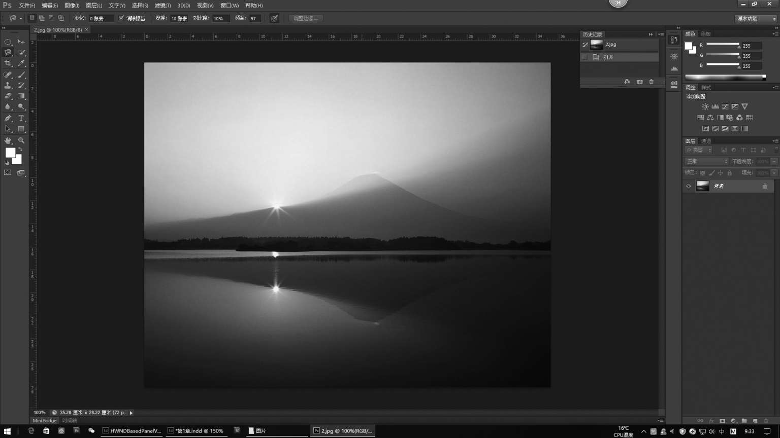 ,单击按钮右侧的三角箭头可以选择【标准屏幕模式】【带有菜单栏的全屏模式】和【全屏模式】3个选项来改变屏幕的显示模式,也可以使用【F】键来实现3种模式之间的切换。建议初学者使用【标准屏幕模式】。