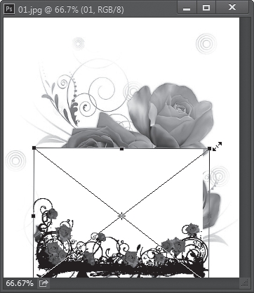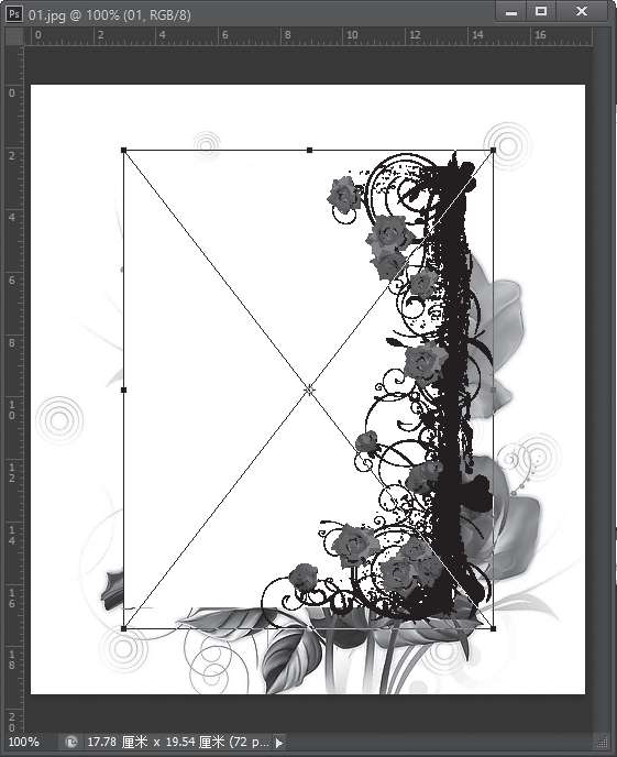 第3步 则图像被置入图“01.eps”上,并在四周显示控制线,如下图所示。