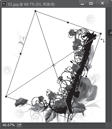 第4步 将鼠标指针放在置入图像的控制线上,当鼠标指针变成旋转箭头时,按住鼠标左键不放,即可旋转图像,如下图所示。