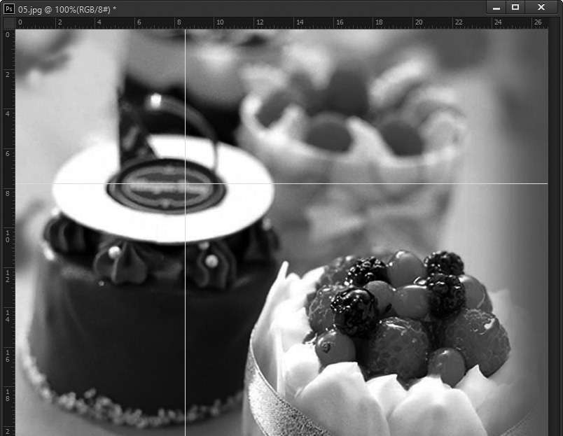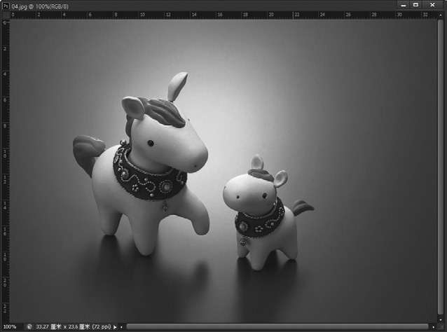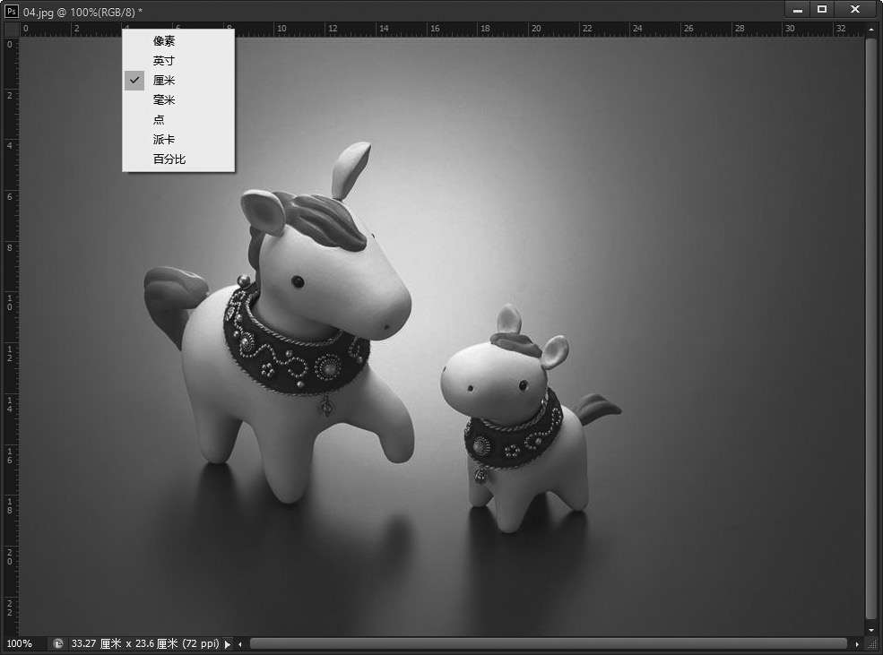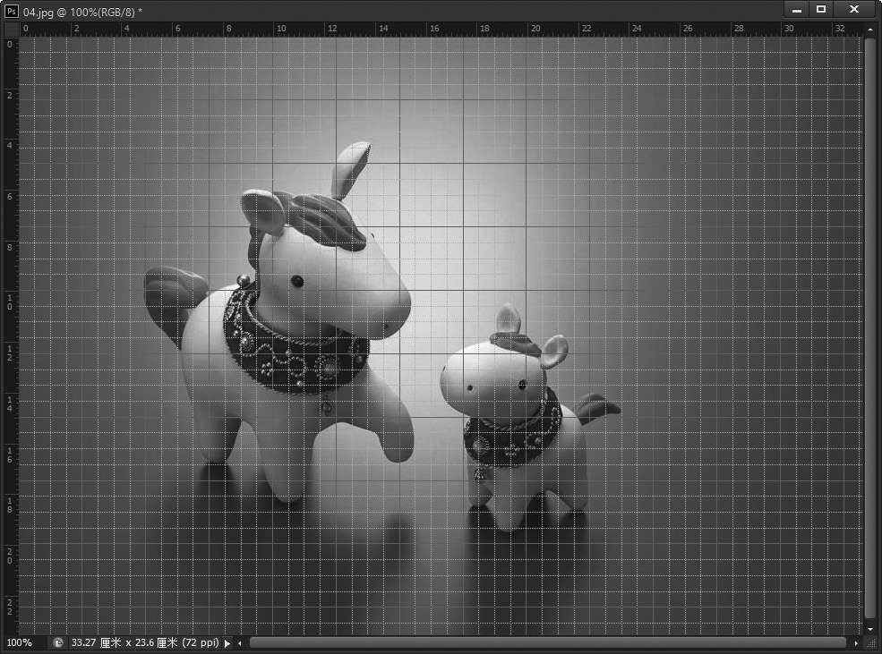 第1步 打开随书光盘中的“素材\ch03\04.jpg”文件。选择【视图】→【标尺】命令或使用【Ctrl+R】组合键,标尺会出现在当前窗口的顶部和左侧,如下图所示。