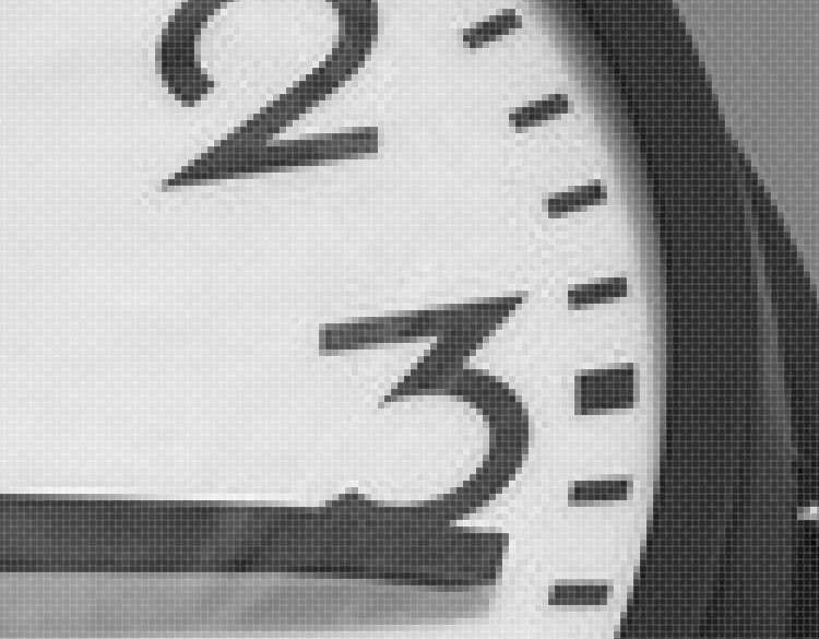 一幅位图图像像素越多,图像越清晰,效果越细腻;选择工具箱中的缩放工具放大图像,可以看到构成图像的方格状像素,如下图所示。
