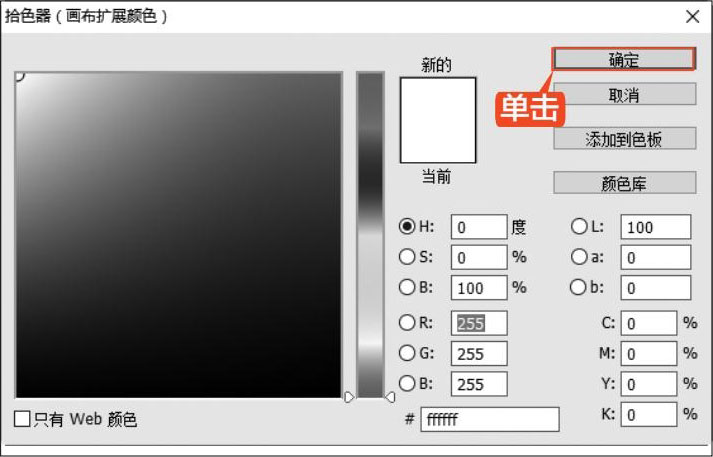 第3步 在弹出的【拾色器(画布扩展颜色)】对话框中选择一种颜色作为扩展画布的颜色,然后单击【确定】按钮,如下图所示。