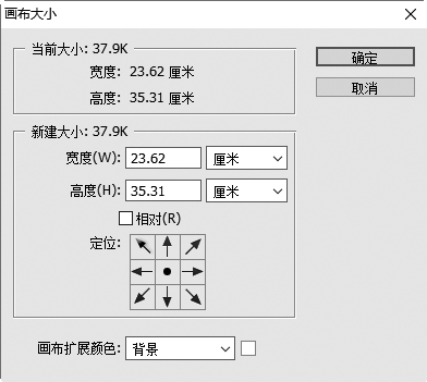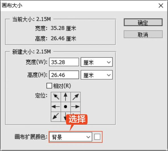 (2)【相对】复选框:在【宽度】和【高度】参数框内根据所要的画布大小输入增加或减少的数量(输入负数将减小画布大小)。