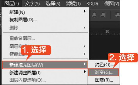第2步 选择【图层】→【新建填充图层】→【渐变】命令,如下图所示。
