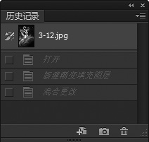 在Photoshop CS6中文版菜单栏中选择【窗口】→【历史记录】命令,打开【历史记录】面板。【历史记录】面板可以撤销历史操作,返回到图像编辑前的状态。下面介绍【历史记录】面板,如下图所示。