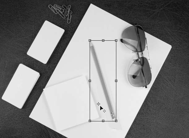 (2)如果要约束比例,则可在拖曳控制手柄时按【Shift】键。如果要旋转选框,则可将鼠标指针放在定界框外(鼠标指针变为弯曲的箭头形状)并拖曳。