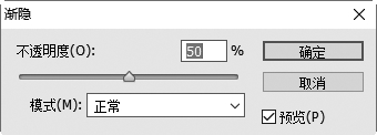 第4步 选择【编辑】→【渐隐滤镜库】命令,在弹出的【渐隐】对话框中设置【不透明度】为“50%”,减弱滤镜效果的强度,如下图所示。