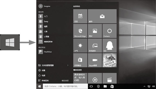 按下并快速松开按键,如同使用遥控器一样。如下图所示为按下【Windows】键,弹出开始屏幕。