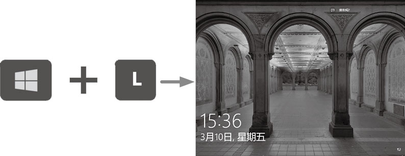按下按键不放。主要用于两个或两个以上的按键组合,称为组合键。按住【Windows】键不放,再按下【L】键,即可进入Windows锁定界面,如下图所示。