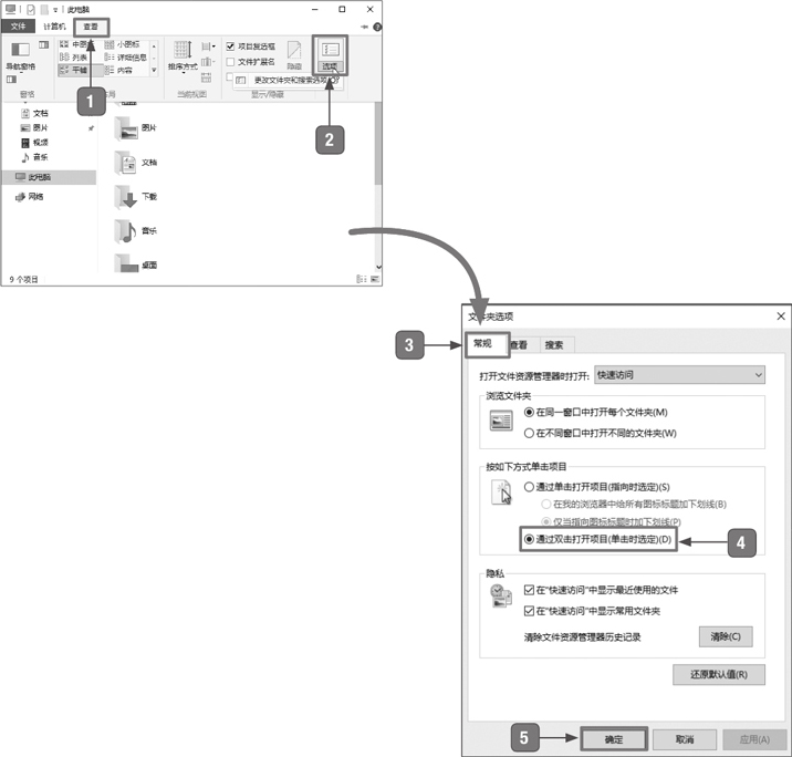 选中【通过双击打开项目(单击时选定】单选按钮。