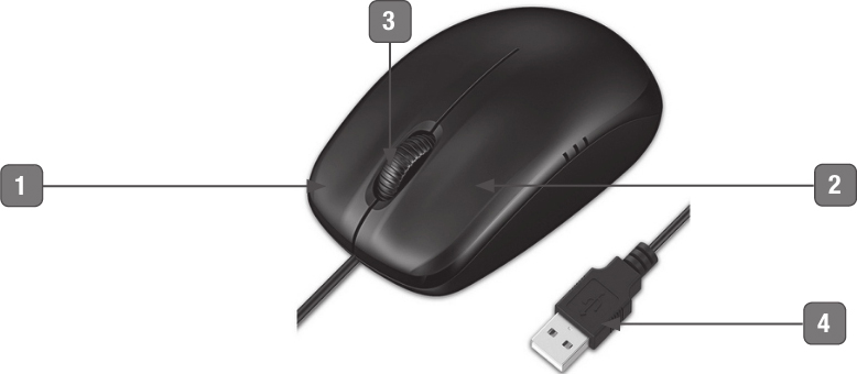 鼠标因外形如老鼠而得名,它是一种使用方便、灵活的输入设备,在操作系统中,几乎所有的操作都是通过鼠标来完成的。下图所示为鼠标的结构图。