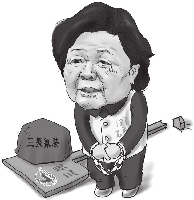 ▲漫画:田文华在受审庭上流泪悔罪