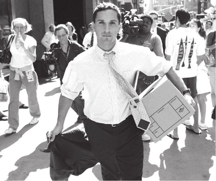 ▲雷曼兄弟申请破产保护当日,一名雇员拿着私人物品离开公司