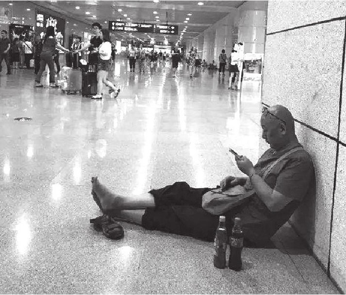 2017年8月,有人在机场拍到樊建川的一张照片,这位年届六旬的亿万富豪光脚坐在地上,斜挎一包,旁若无人地看着手机,真的很像一个百战归来的流浪汉子。