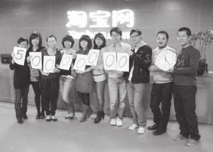 ▲淘宝小伙伴拍照庆祝(找到这张图片时,我们数了数,其实并未少“0”。我们猜想,他们大概是太兴奋了)