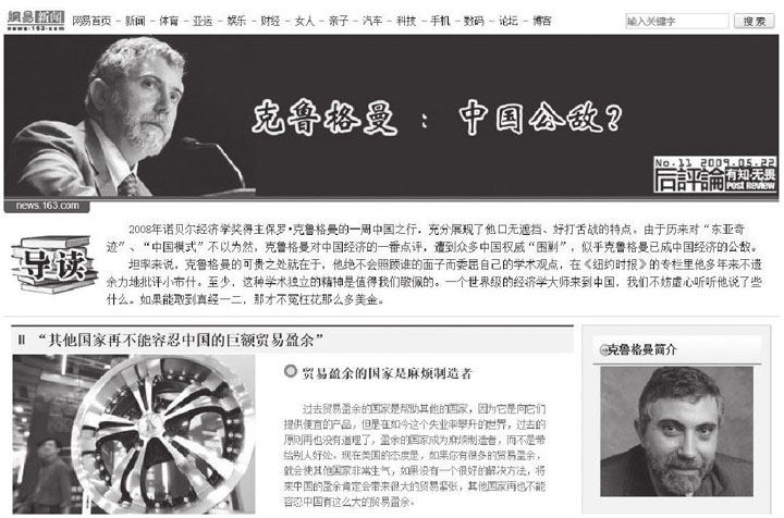 ▲网易“克鲁格曼:中国公敌?”专题页面