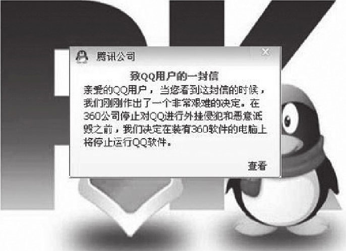 腾讯向深圳公安局经济侦查分局报案,同时向北京的工信部投诉。可是,接到报案的公安部门根本不知道发生了什么事情,而工信部也对腾讯的投诉一头雾水,现行法律对超速进化的互联网竞争行为完全失配。