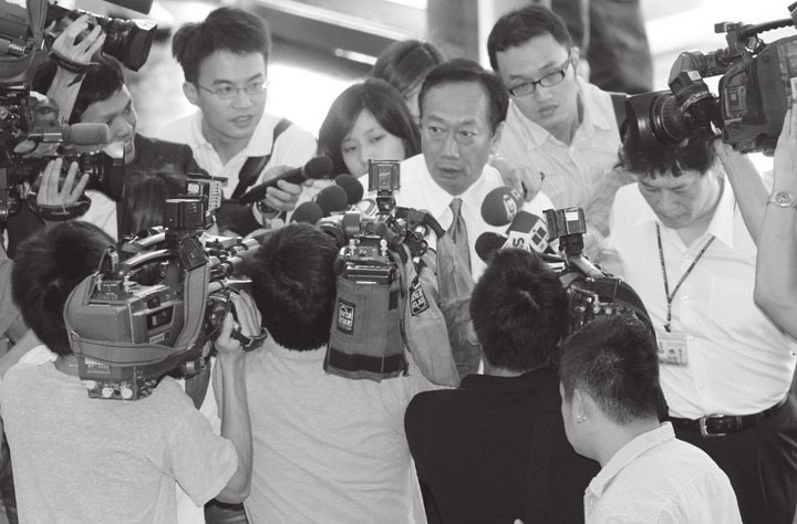 ▲富士康公司传出多起员工跳楼事件后,郭台铭赶往深圳了解状况