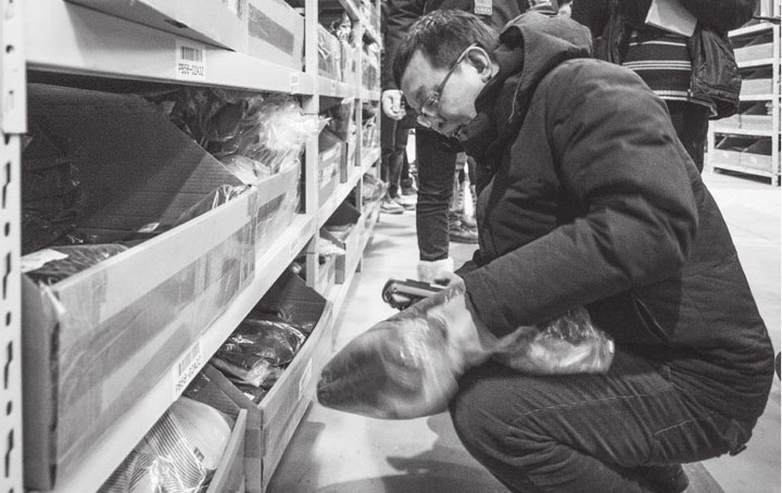 ▲陈年在仓储中心亲自“拣货”