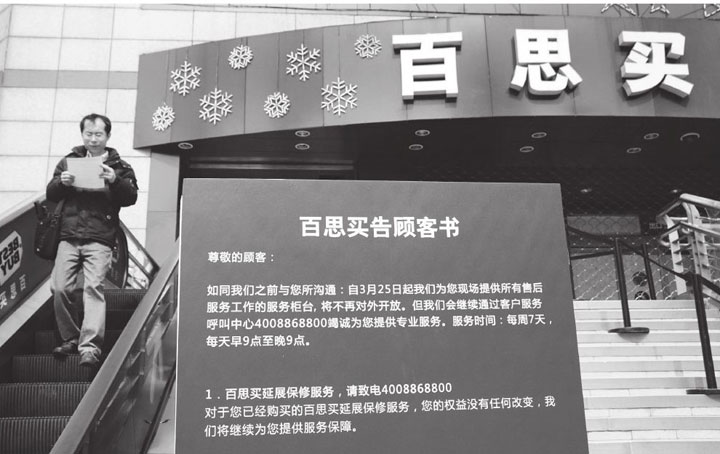 ▲上海百思买徐家汇店门前的“告顾客书”的醒目牌子