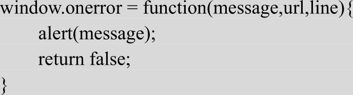 提示: 不同浏览器在使用error事件处理错误时的方式有明显不同。在IE中,即使发生error事件,代码仍然会正常执行,所有变量和数据都将得到保留,因此能在onerror事件处理程序中访问它们。但在Firefox中,常规代码会停止执行,事件发生之前的所有变量和数据都将被销毁,因此几乎就无法判断错误了。