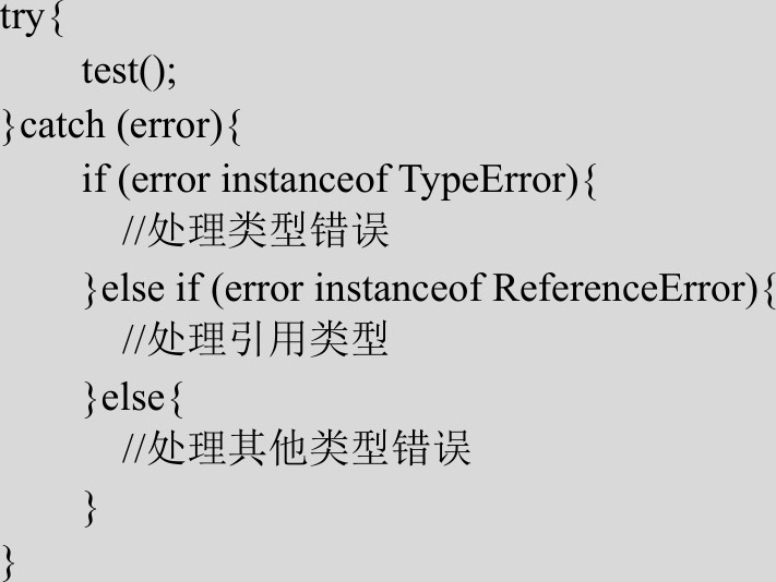 【应用】 如果想知道错误的类型,可以按下面这样在try-catch语句的catch语句中使用instanceof操作符。