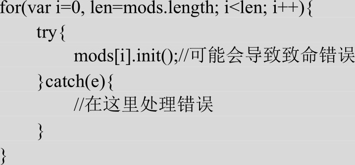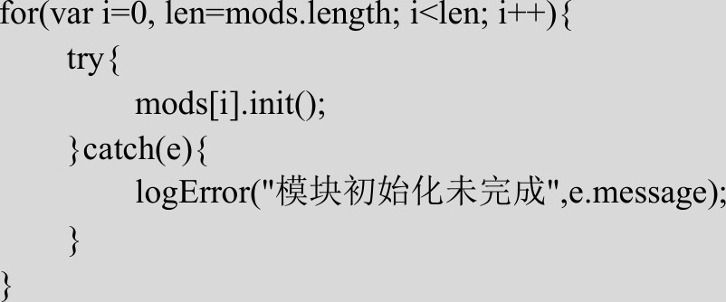 通过在for循环中添加try-catch语句,任何模块初始化时出错,都不会影响其他模块的初始化。在以上重写的代码中,如果有错误发生,相应的错误将会得到独立的处理,并不会影响到用户的体验。