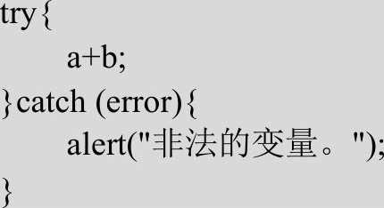 【拓展】 当try-catch语句中发生错误时,浏览器会认为错误已经被处理了,因而不会报告错误。对于那些不要求用户懂技术,也不需要用户理解错误的Web应用程序。这应该说是个理想的结果。不过try-catch能够让我们实现自己的错误处理机制。