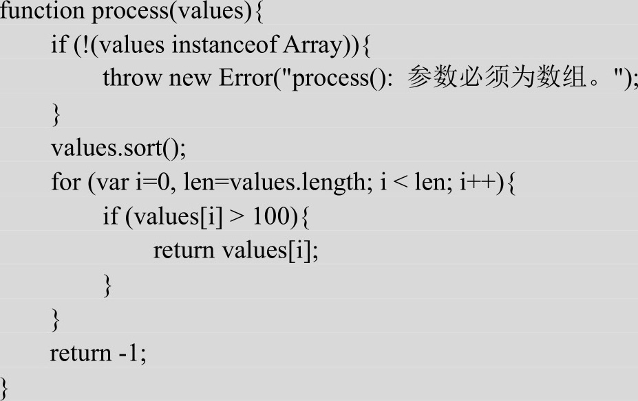 在明明白白地知道自己的代码会发生错误时,再使用try-catch语句就不太合适了。例如,如果传递给函数的参数是字符串而非数值,就会造成函数出错,那么就应该先检查参数的类型,然后再决定如何去做。在这种情况下,不使用try-catch语句。