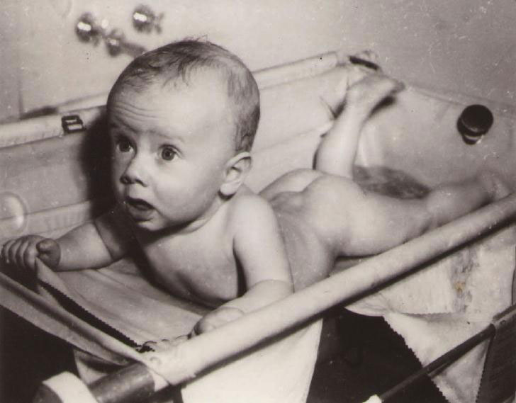 一岁洗澡时的吉姆有着令人印象深刻的抬头纹。