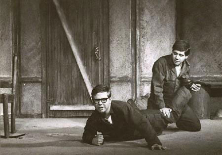 罗杰斯与朋友在耶鲁大学上台表演。 |