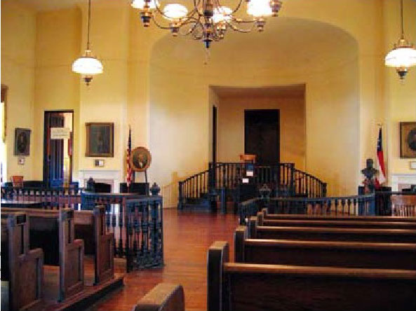 这个案子的关键,显然是在评判对于庄园的第一次没收行动,即政府没收属于“敌产”的私人财产,是否合法。在这个法庭,杰弗逊·戴维斯穿着象征南军的灰色制服,每天和他的律师出席庭审,就坐在我们眼前的那张长桌后面。在这个由重建时期的北方政府控制的法庭上,杰弗逊·戴维斯败诉了。可是在向密西西比州最高法院的上诉中,杰弗逊·戴维斯最终赢回了自己的庄园。