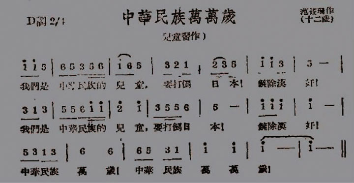 年仅12岁的儿童范筱珊所作歌曲《中华民族万万岁》(《新音乐》1941年第3卷第5期“新人曲选”栏)