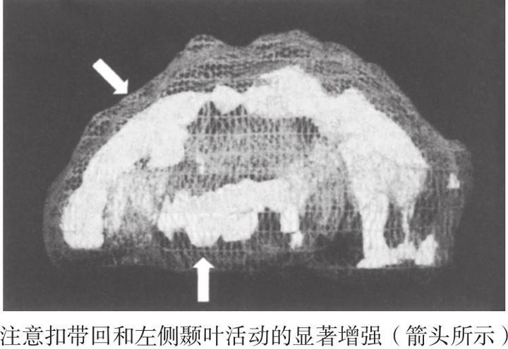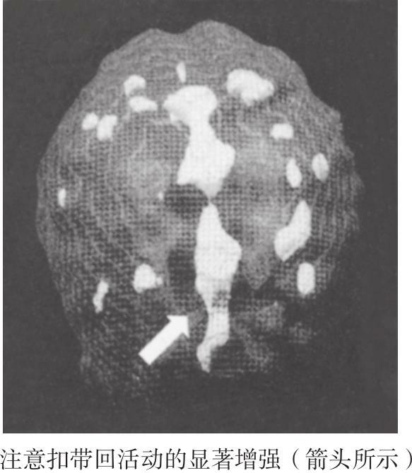 明显表现出了过度激活,这种过度激活在左半球表现得更为突出。一般来说,深层边缘系统在左右半球两侧激活水平的不对称往往和临床上的抑郁或易激惹相关。然而,11天之后,当米歇尔情绪稳定并进行第二次脑成像检查的时候,结果显示,这个时候她深层边缘系统的激活程度是完全正常的。