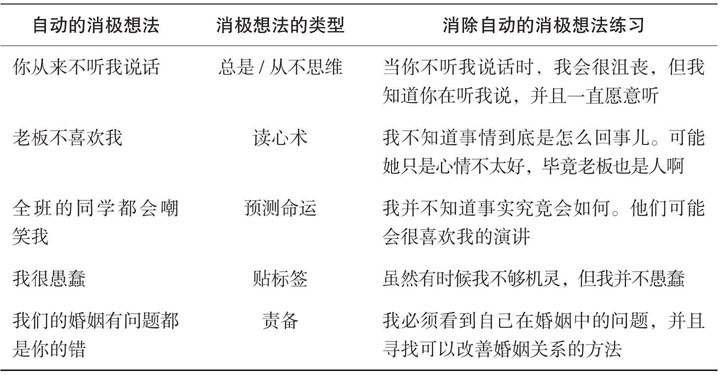 下面是一些消除自动的消极想法的例子: