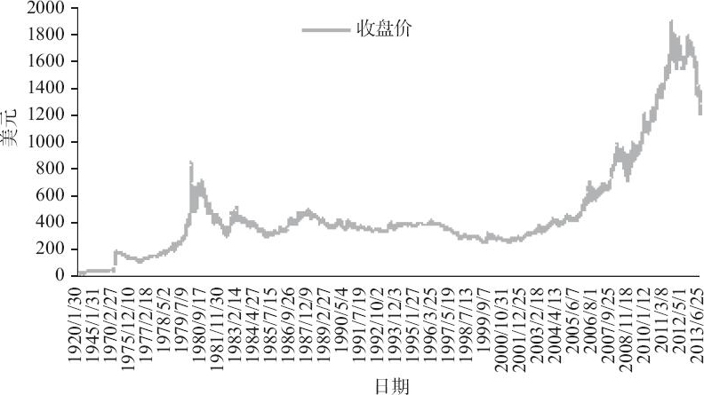 如果我们观察黄金的历史价格波动,可以看到1980~2002年,黄金跌了20多年。当然,你可以把握住中间的小波段,但是你得首先判断自己有没有这样的投资能力,我想绝大多数人不具备,也包括我自己。所以,我不会轻易地大比例投资黄金(参见图2-3和表2-2)。
