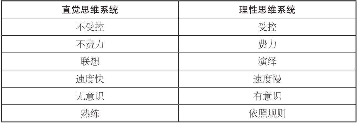 表1–1 两套认知系统