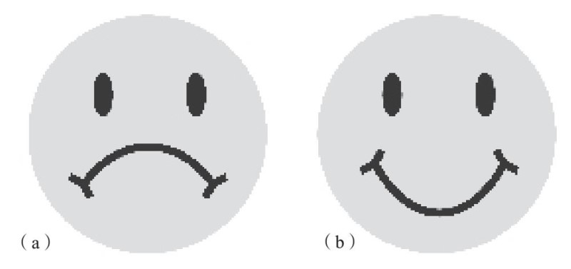 然而,这里面还有一个更为有趣的发现。大约有一半的家庭不仅收到了叙述性的信息,还收到了一个很小的非口头的信号:自己的能耗值是否得到了社会的认同。确切地说,那些能源消耗值高于社会平均值的家庭收到了一个“不高兴”的表情[见图3–2(a)],而那些能源消耗低于社会平均值的家庭收到了一个“微笑”的表情[见图3–2(b)]。