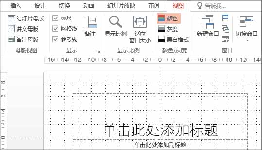 在编辑幻灯片时,标尺主要用于对齐或定位各对象,而使用网格和参考线可对对象进行辅助定位。网格指幻灯片中显示的方格,每个方格之间的距离为设置的间距值。参考线是幻灯片中央的水平和垂直虚线。下面讲解如何显示和隐藏标尺、网格线和参考线。