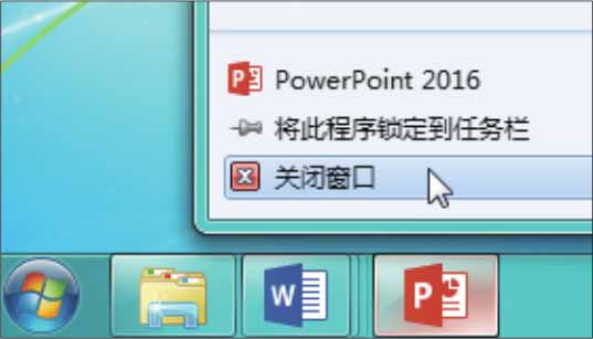 完成演示文稿的制作后,需要退出PowerPoint 2016应用程序。这里介绍两种利用Windows操作系统的功能来退出PowerPoint 2016应用程序的方法。