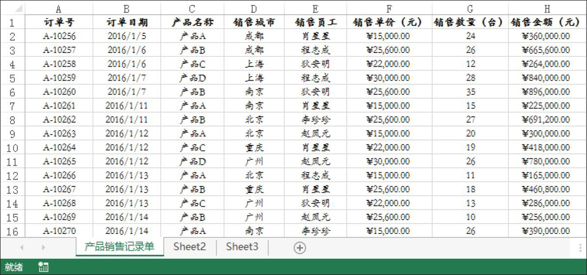 数据源: 指用来创建数据透视表的数据。数据源可以位于工作表中,也可以位于一个外部的数据库中。如图1-12所示的“产品销售记录单”就是一份数据源。