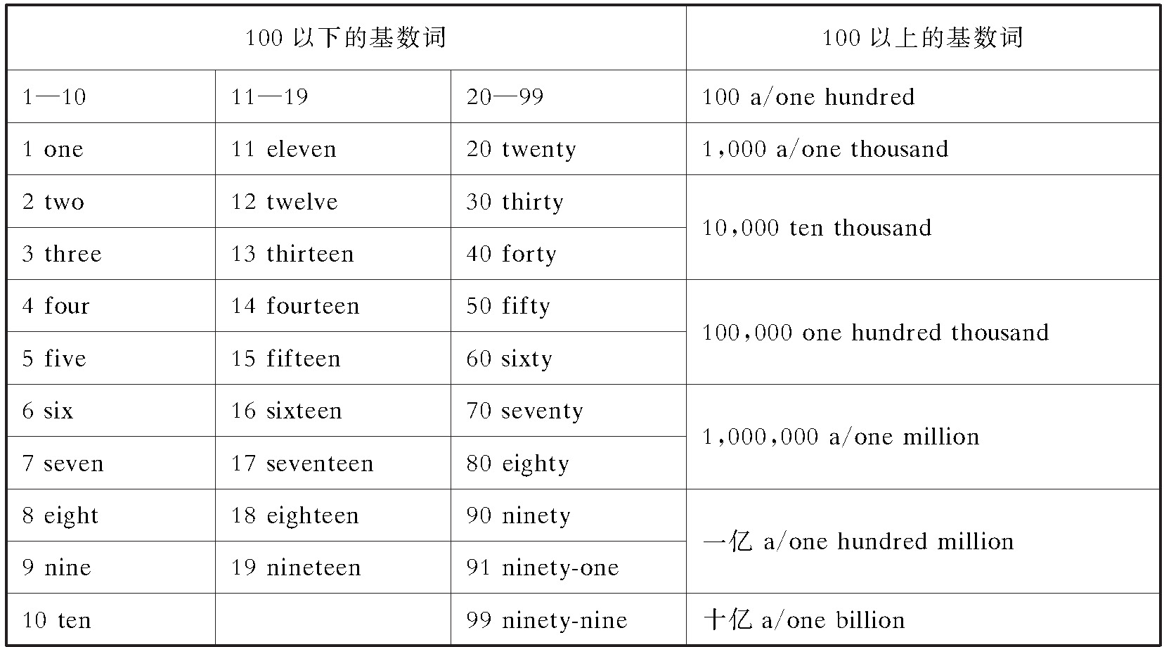 (3)“几十几”的基数词是由整十位数加个位数合成,且两者之间要用连字符“-”连接。如21 twenty-one,38 thirty-eight,55 fifty-five,97 ninety-seven,76 seventy-six等。