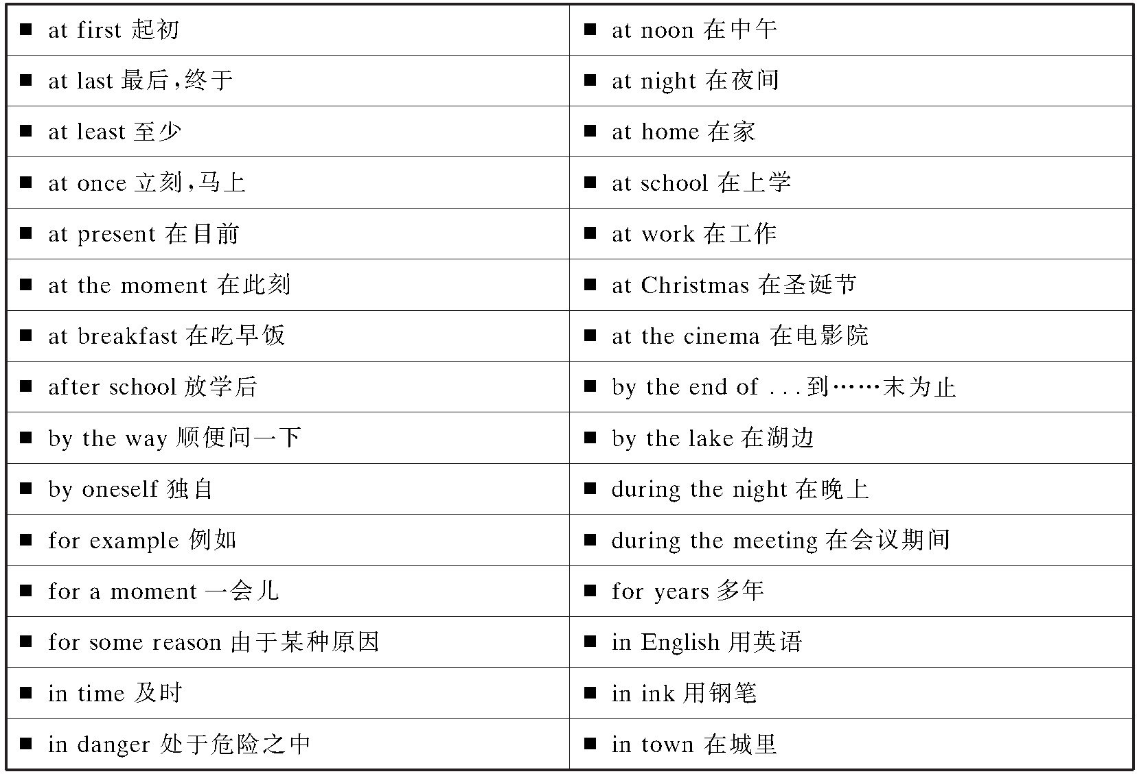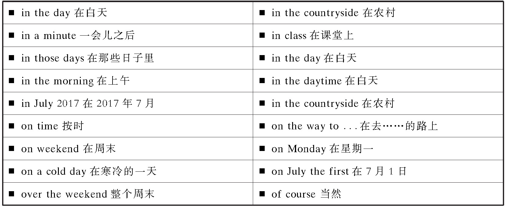 (1)介词与其后面的名词搭配
