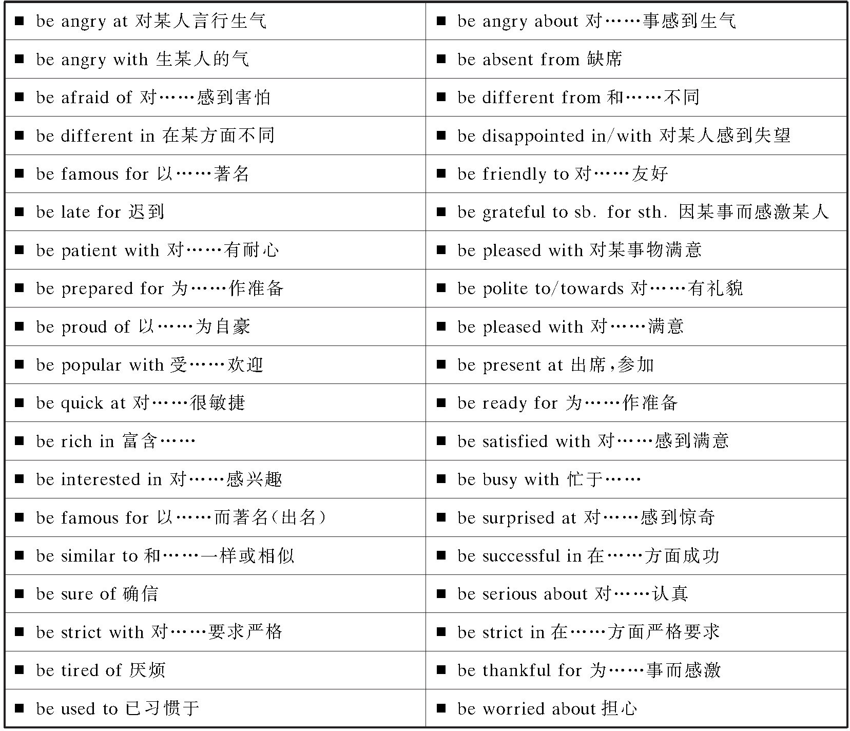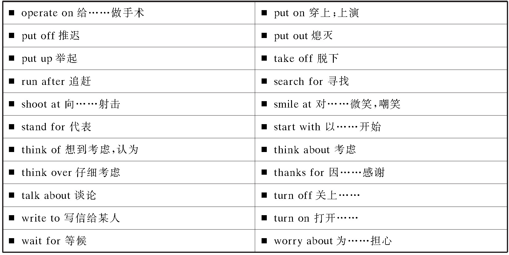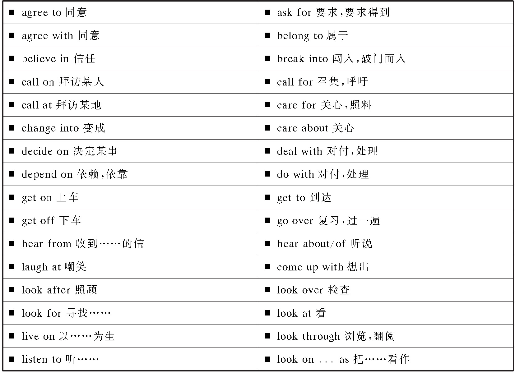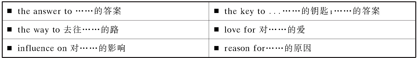 介词除了与后面的名词等构成介词短语外,还可以与其后的动词、名词、形容词等构成固定搭配,表达不同的意义。这些固定搭配也是中考中经常考到的内容。